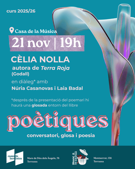 Casa de la Música de Terrassa i la Llibreria Synusia us conviden a la primera sessió de Poètiques una conversa poètica i musical de tardor que comptarà amb dues sessions.