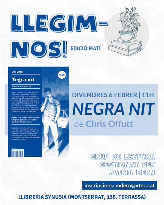 La Llibreria Synusia us convida a la sessió del grup de lectura Llegim-nos de matí que tindrà lloc el pròxim divendres 6 febrer a les 11h a Synusia.