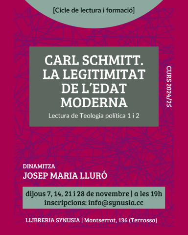 La llibreria Synusia us convida al cicle formatiu Carl Schmitt. La legitimitat de l'Edat Moderna