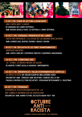 Les activitats d'aquest Octubre Antiracista de 2025 són les següents:
