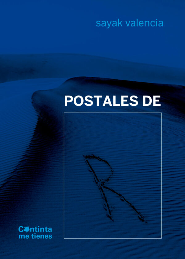 El desierto, los nombres del exilio, la música del daño o la memoria de los huesos son algunos de los paisajes por los que la poeta, filósofa y ensayista Sayak Valencia y estas, sus Postales de R, transitan y nos invitan a viajar a través de ellos. En palabras de María Salgado, autora del epílogo: «Unas cartas breves, precisas, inteligentes, virtuosamente condensadas y elegantes a más no poder, que han sido escritas desde las décadas en que el transfeminismo salió del underground, aportando las cantidades de melodrama, cuerpo y exceso que todas las escenas del arte y la de la vida venían necesitando y periódicamente buscando en las disidencias de las personas más expuestas a todo ello, es decir, las que más orientaron y desorientaron sus trayectorias vitales y estéticas sobre el deseo».