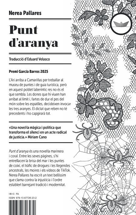 Punt d’aranya és una novel·la marinera i coral. Entre les seves pàgines, s’hi entrellacen la brisa del mar i les puntes de coixí, el tràfic de drogues i les llegendes ancestrals, les moires i els vídeos de TikTok. Nerea Pallares ha escrit un text bellíssim que clama contra la injustícia i l’ordre establert barrejant tradició i modernitat.