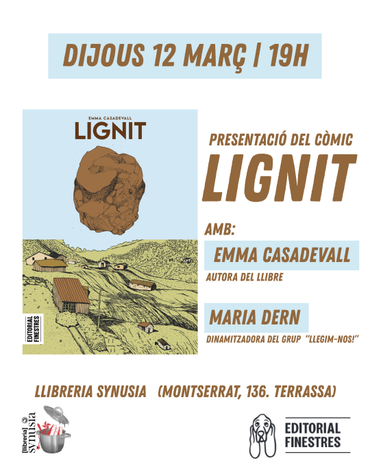 La llibreria Synusia us convida a la presentació del còmic Lignit (Editorial Finestres) el pròxim dijous 12 de març a les 19h. Per a la presentació ens acompanyarà Emma Casadevall, autora del llibre.